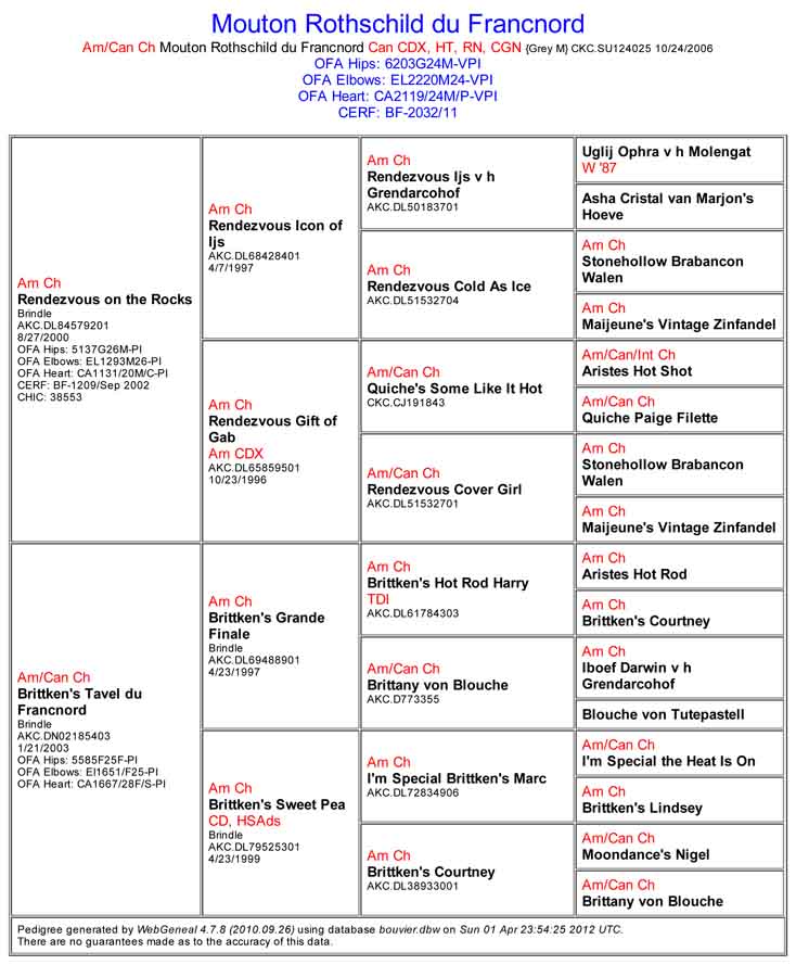 Nom : OTCH. & GCH. Mouton Rothschild du Francnord, HT, CGN, RE, Américain. Ch. RA, CDX